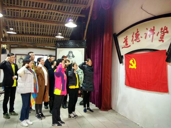 在卻金館導(dǎo)游朱勇華為我們講了“何文淵做知府”的廉潔故事 , 全體黨員向黨旗莊嚴(yán)地舉宣誓,再一次重溫入黨誓詞,黨員進行2016年度下半年先鋒考評表。