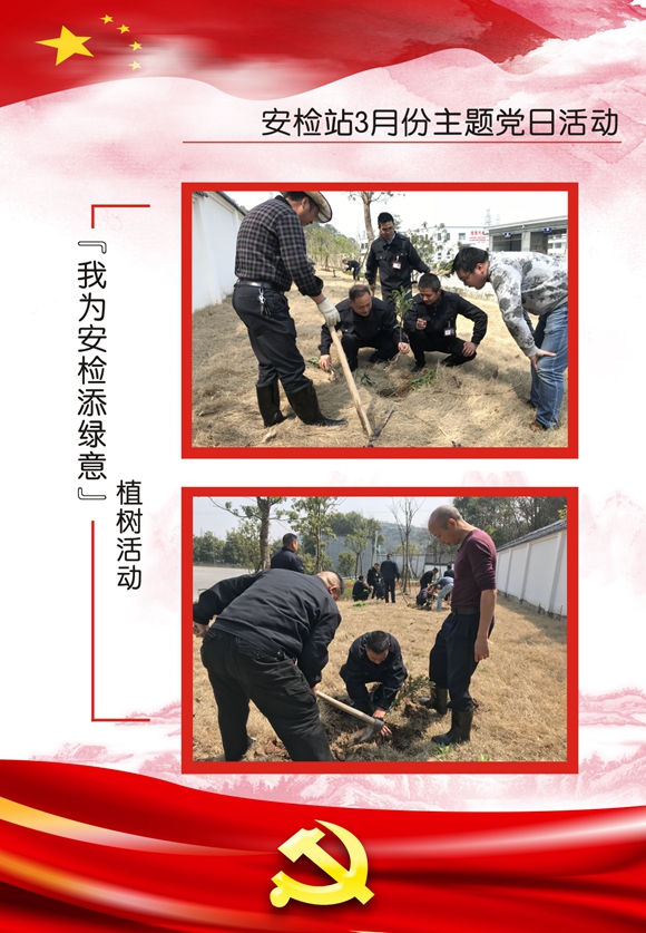 春風(fēng)拂面,大地添綠,在3月12日植樹節(jié)中午,安檢站黨支部組織黨員群眾開展“我為安檢添綠意”主題黨日活動(dòng)。